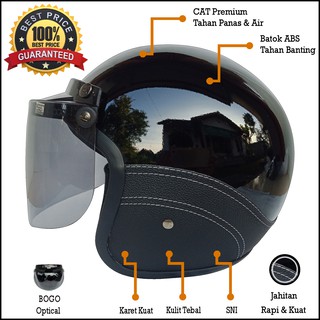 Helm Bogo Retro Berkualitas Black Glossy Visor Bogo Original Helm Dewasa Ukuran M L