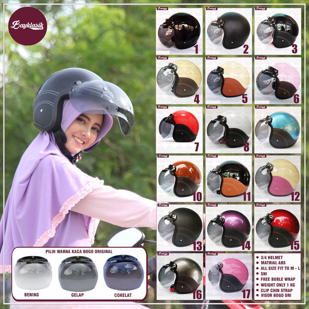 Promo Helm Retro Bogo Sni Kulit Standart Kaca Bogo Original Helm Murah Helm Bogo Terbaru 2018