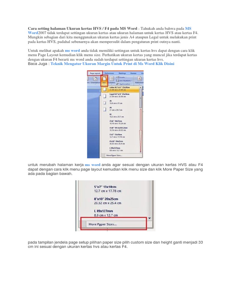 Cara Setting Halaman Ukuran Kertas Hvs F4 Pada Ms Word
