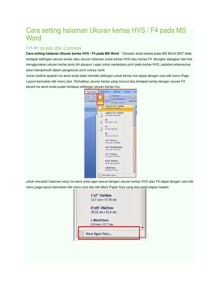 Cara Setting Halaman Ukuran Kertas Hvs F4 Pada Ms Word