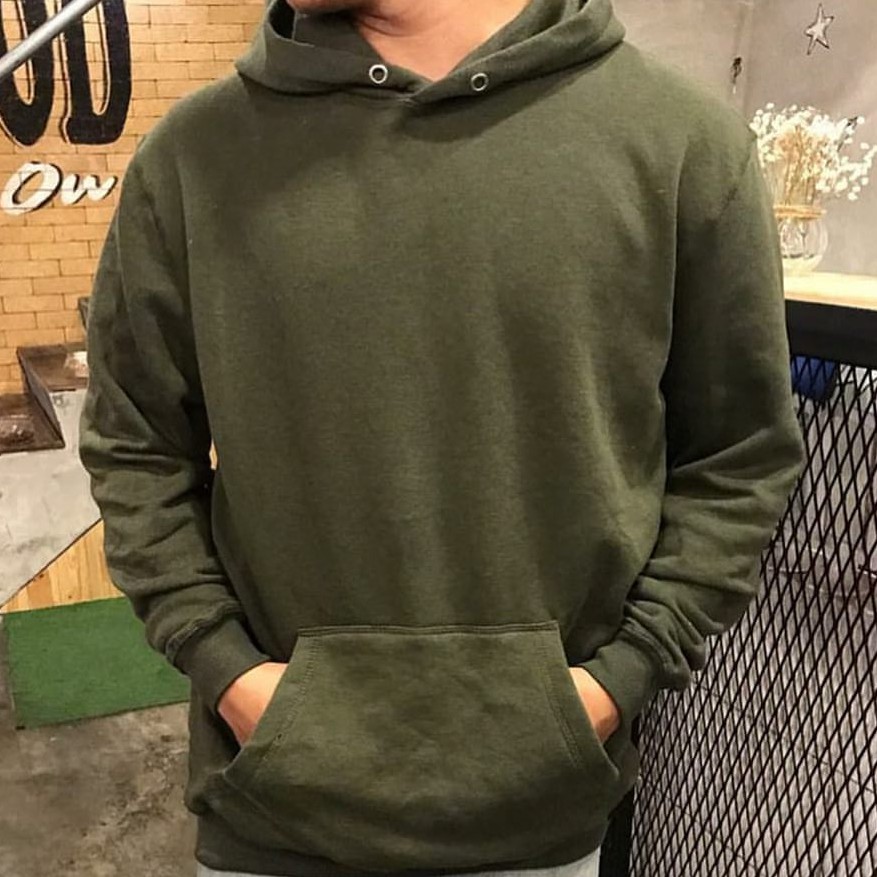 Sweater Hoodie Polos Green Army Bahan Baby Terry Cvc 30s Unisex Size Lokal