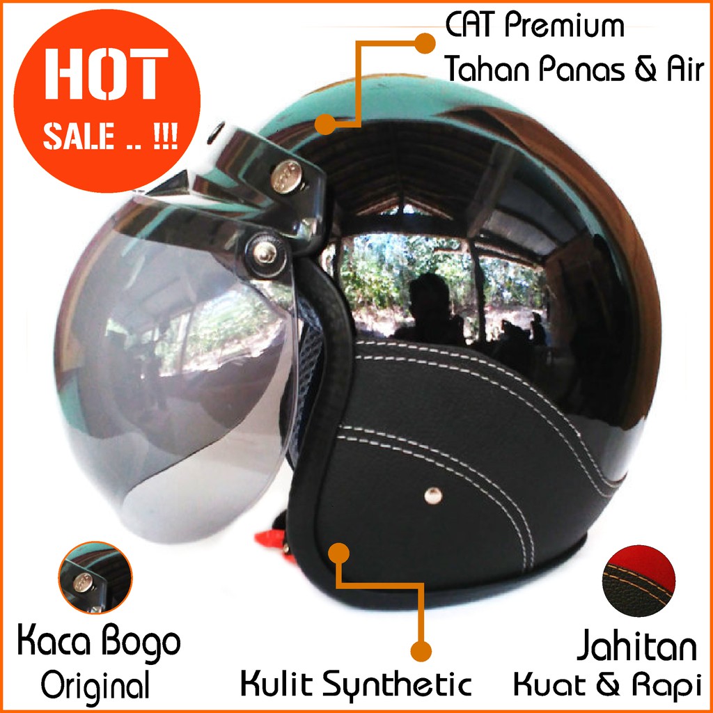 Helm Bogo Retro Kulit Dewasa Kaca Bogo Original Warna Kombinasi
